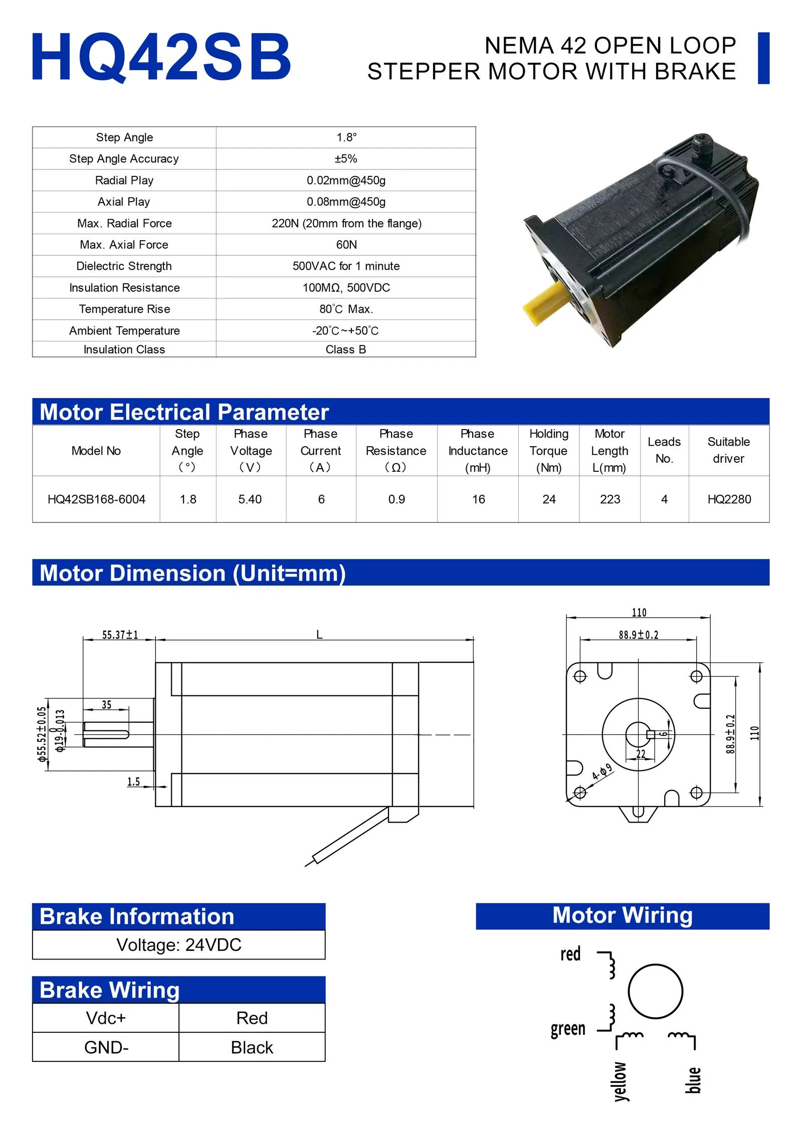 | HQ42SB168-6004 | 24.0 Nm | 6.0 A | 223 mm | HQ2280 |