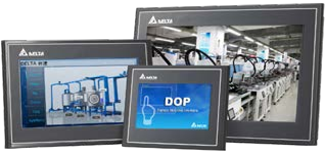 Delta’nın operatör panelleri DOP-100 ve DOP-300 serileri; 4.3” ten 15.0”e kadar geniş dokunmatik ekran seçenekleri, yüksek çözünürlük, 800MHz ve 1.2GHz çift çekirdekli yüksek hızlı işlemciler ve zengin grafik kütüphanesiyle şık ve güçlü çözümler sunar. BACnet ve OPC UA dahil 200 farklı cihaz ile kendi haberleşme protokolü ve kendi adreslerini kullanarak haberleşme desteği sağlar.