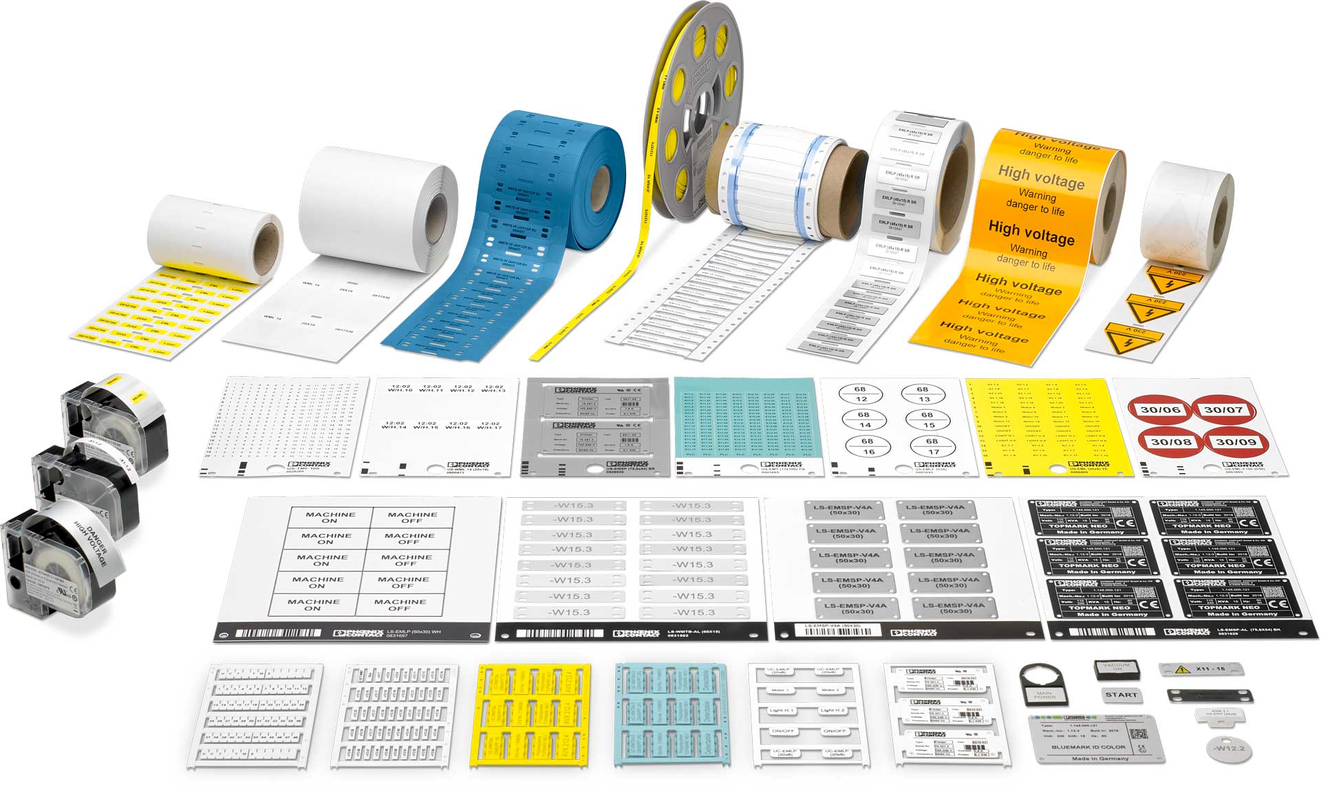 Markalama malzememiz, kumanda panosu markalamadan dış mekân sistemlerine kadar, endüstriyel ortamlardaki çeşitli uygulamalar için uygundur. Markalanan malzemelerin zorlu koşullar altında bile dayanıklılığı, tüm uluslararası standartları ve gereklilikleri karşılamaktadır. Klemens markalama, tel ve kablo markalama, ekipman markalama ve tesis markalama için çok sayıda versiyon mevcuttur.