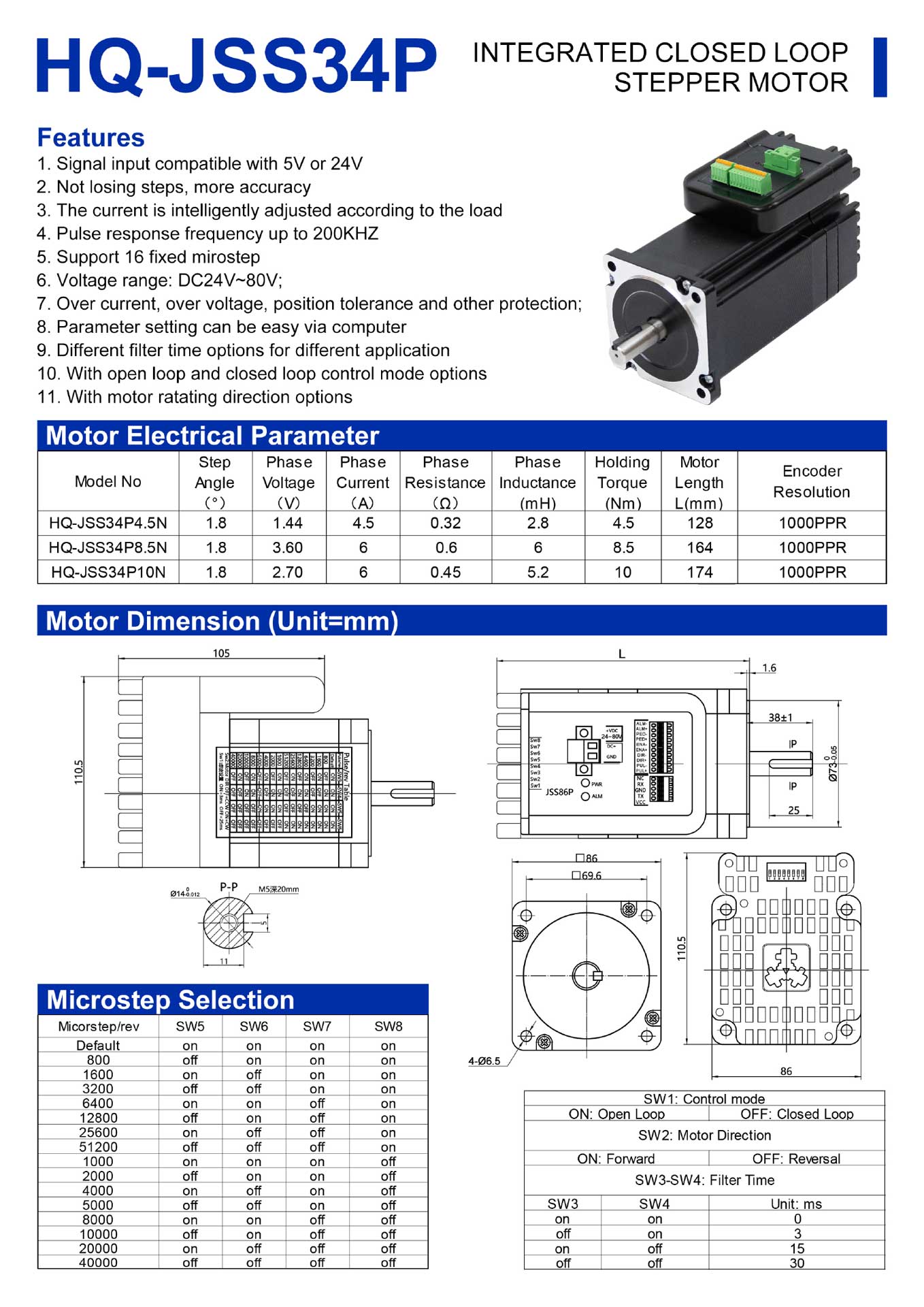 | HQ-JSS34P4.5N | 4.5 Nm | 128 mm | 1000 PPR | 24-80VDC |